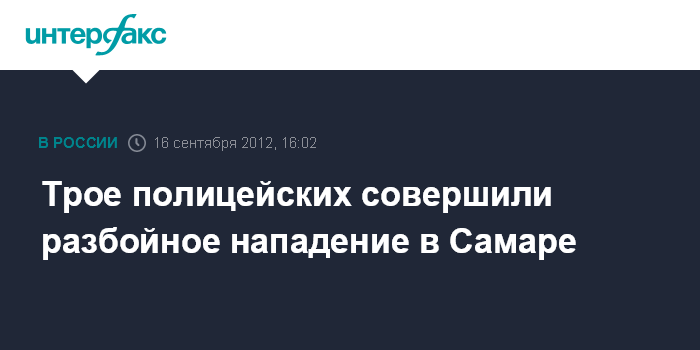 Москва. 15 сентября. INTERFAX.RU - В Самаре задержаны трое сотрудников полиции, подозреваемых в разбойном нападении.
