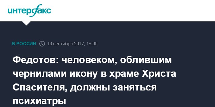 Федотов: человеком, облившим чернилами икону в храме Христа Спасителя, должны заняться психиатры