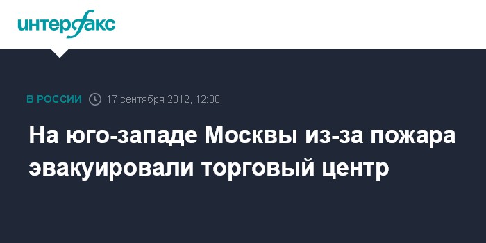 На юго-западе Москвы из-за пожара эвакуировали торговый центр