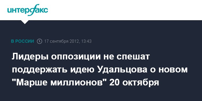 Лидеры оппозиции не спешат поддержать идею Удальцова о новом "Марше миллионов" 20 октября