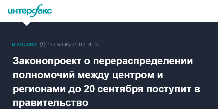 Законопроект о перераспределении полномочий между центром и регионами до 20 сентября поступит в правительство
