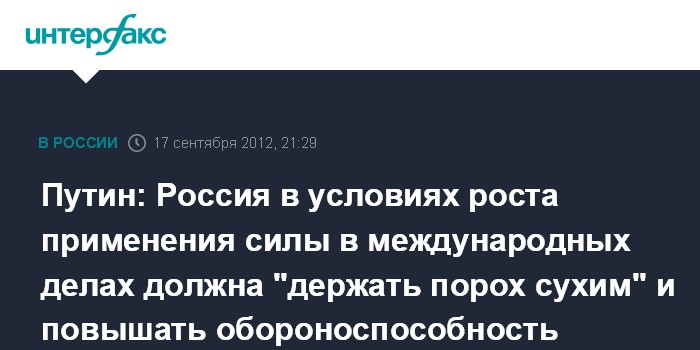 Путин: Россия в условиях роста применения силы в международных делах должна "держать порох сухим" и повышать обороноспособность
