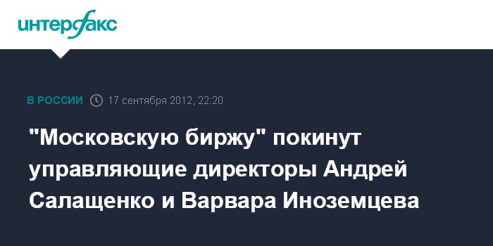 "Московскую биржу" покинут управляющие директоры Андрей Салащенко и Варвара Иноземцева