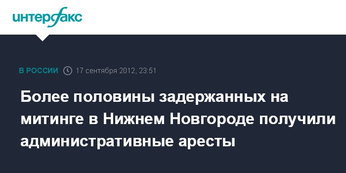 Нижний Новгород. 17 сентября. INTERFAX.RU - Мировой суд в Нижнем Новгороде вынес решения по административным делам в отношении десяти задержанных на несогласованном митинге в рамках всероссийской акции "Марш миллионов", сообщил оргкомитет прошедшего в субботу митинга.