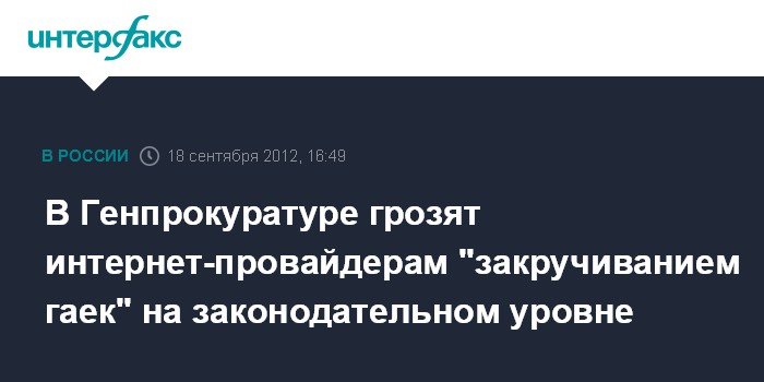 В Генпрокуратуре грозят интернет-провайдерам "закручиванием гаек" на законодательном уровне
