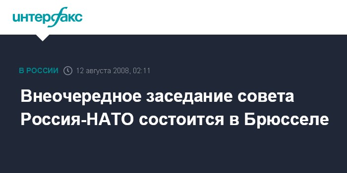 Брюссель. 12 августа. INTERFAX.RU - Внеочередное заседание совета Россия-НАТО состоится во вторник днем по инициативе российской стороны. Как сообщили "Интерфаксу" накануне в российском постпредстве в Брюсселе, председательствовать на заседании будет генсек НАТО Яап де Хооп Схеффер, участие в нем примут все послы стран-членов НАТО, отозванные из отпусков. Предполагается, что с подробным сообщением о ситуации в зоне грузино-югоосетинского конфликта выступит постпред России при НАТО Дмитрий Рогозин.