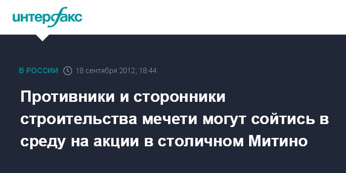 Противники и сторонники строительства мечети могут сойтись в среду на акции в столичном Митино