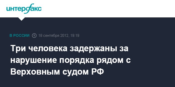 Москва. 18 сентября. INTERFAX.RU - Сотрудники полиции задержали трех человек у здания Верховного суда РФ за нарушение общественного порядка, сообщили "Интерфаксу" в пресс-службе ГУ МВД России по Москве.