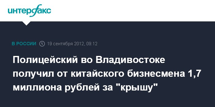 Как сообщила "Интерфаксу" старший помощник руководителя СКР по Приморью Аврора Римская, в 2008 г. полицейский пообещал китайскому предпринимателю, что его бизнес не будут проверять государственные органы. Фактически полицейский подобных полномочий не имел.