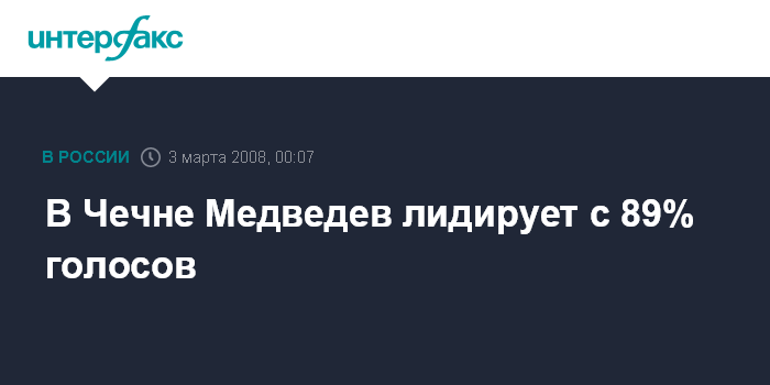 В Чечне Медведев лидирует с 89% голосов