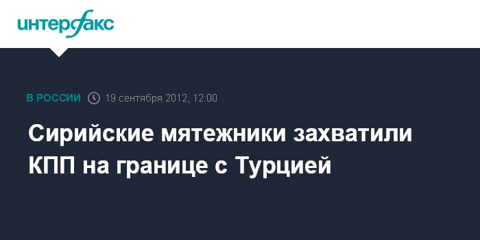 Бейрут. 19 сентября. INTERFAX.RU - Вооруженные сирийские оппозиционеры захватили в среду один из КПП на границе с Турцией, передает агентство Ассошиэйтед пресс.