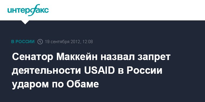 Вашингтон. 19 сентября. INTERFAX.RU - Влиятельный сенатор-республиканец Джон Маккейн в среду призвал администрацию президента Барака Обамы осудить решение Москвы о закрытии офиса Агентства США по международному развитию (АМР США) в России.