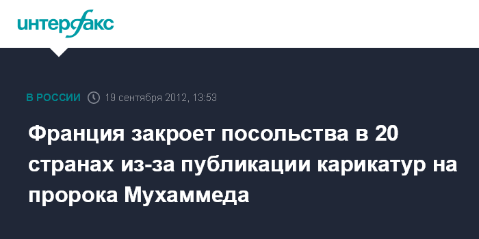 В Париже пошли на такие меры, так как опасаются акций протеста и нападений на дипломатов после публикации во французском журнале "Шарли эбдо" карикатур на пророка Мухаммеда.