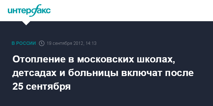 Отопление в московских школах, детсадах и больницы включат после 25 сентября