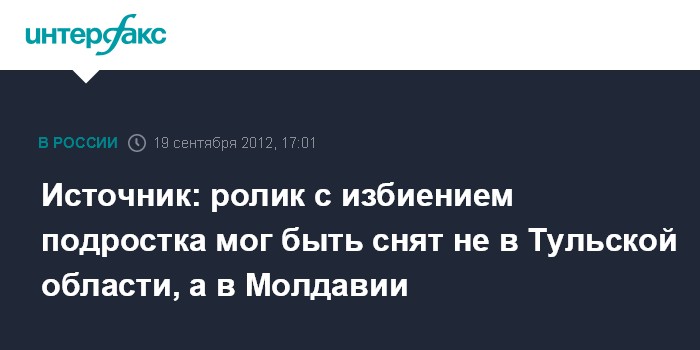 Тула. 19 сентября. INTERFAX.RU - Следствие не исключает, что инцидент с избиением подростка в одном из учебных заведений, видео которого появилось в интернете, мог произойти в Молдавии, а не в Тульской области, как утверждалось ранее.