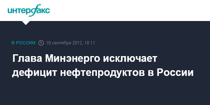 Павлодар. 19 сентября. INTERFAX.RU - Дефицит нефтепродуктов в России допущен не будет, заявил министр энергетики РФ Александр Новак.
