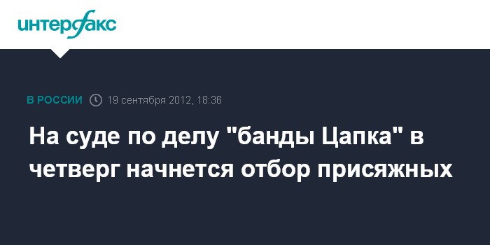 Краснодар. 19 сентября. INTERFAX.RU - Краснодарский краевой суд в четверг приступит к формированию коллегии присяжных заседателей по делу уголовному делу "банды Цапка".