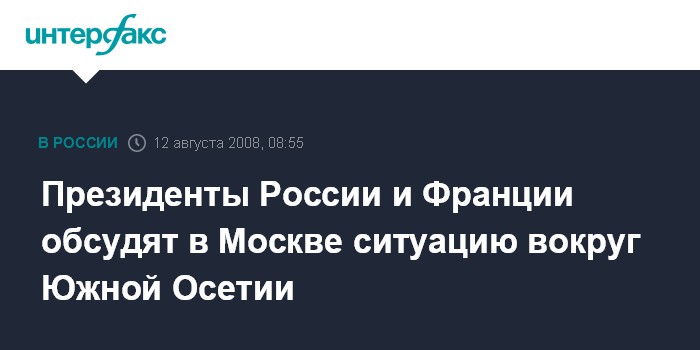 Президенты России и Франции обсудят в Москве ситуацию вокруг Южной Осетии