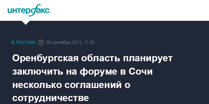 Оренбургская область планирует заключить на форуме в Сочи несколько соглашений о сотрудничестве