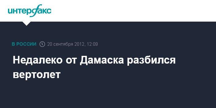 Бейрут. 20 сентября. INTERFAX.RU - Вертолет разбился в четверг в городе Думе, расположенном недалеко от столицы Сирии, передает сирийское государственное телевидение.