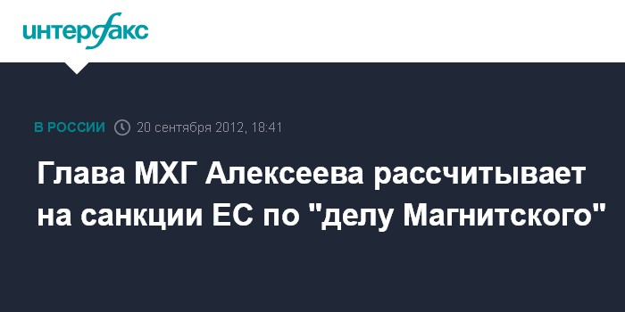 Глава МХГ Алексеева рассчитывает на санкции ЕС по "делу Магнитского"