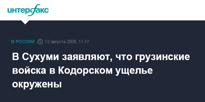 Москва. 12 августа. INTERFAX.RU - Грузинские войска, находящиеся в верхней части Кодорского ущелья Абхазии, взяты в окружение Вооруженными силами непризнанной республики.