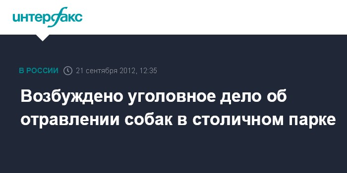 Москва. 21 сентября. INTERFAX.RU - Уголовное дело возбуждено по факту убийств собак в парке на западе Москвы, сообщила "Интерфаксу" официальный представитель УВД Западного округа Юлия Макарцева.