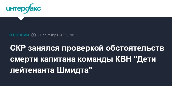 СКР занялся проверкой обстоятельств смерти капитана команды КВН "Дети лейтенанта Шмидта"