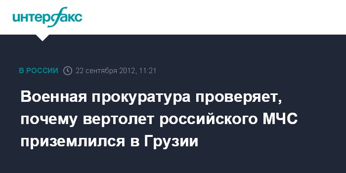 Ростов-на-Дону. 22 сентября. INTERFAX.RU – Прокуратура проверяет обстоятельства несанкционированной посадки вертолета МЧС России на территории Грузии.