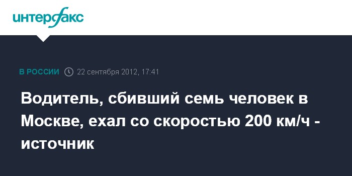 Москва. 22 сентября. INTERFAX.RU – Водитель автомобиля "Тойота", сбившего на остановке на западе Москвы на смерть семь человек, возможно, был пьян и сильно превысил скорость, сообщил "Интерфаксу" источник в оперативном штабе по ликвидации последствий ЧС.