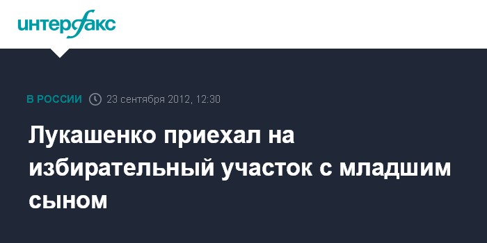 Минск. 23 сентября. INTERFAX.RU - Президент Беларуси Александр Лукашенко вместе со своим младшим сыном Николаем прибыл на один из избирательных участков Минска, где проголосует на выборах депутатов Палаты представителей Национального собрания.