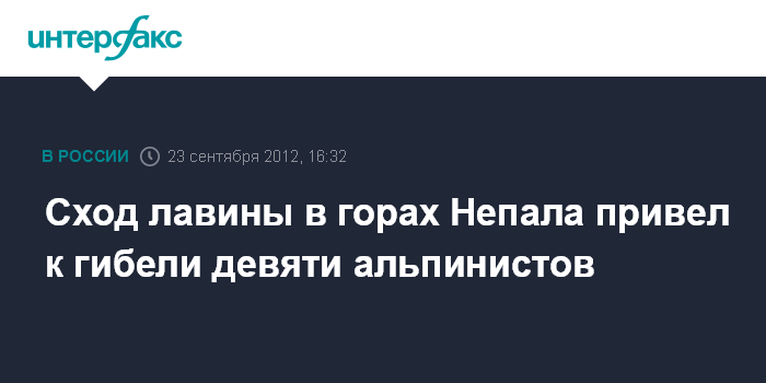 Лондон. 23 сентября. INTERFAX.RU - Не менее девяти альпинистов погибли в результате схода лавины на горе Манаслу в непальских Гималаях, сообщает в воскресенье BBC.