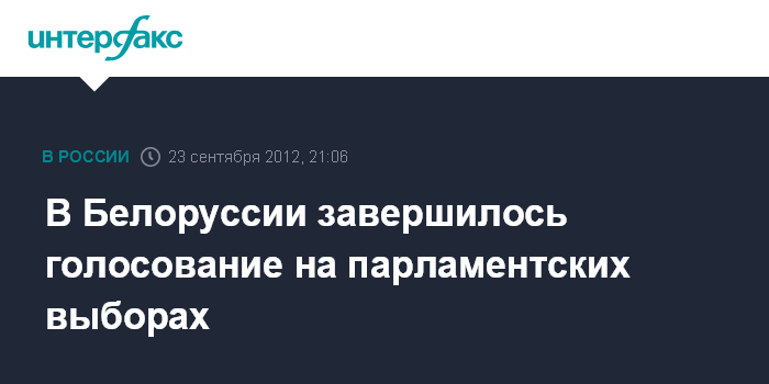 Минск. 23 сентября. INTERFAX.RU - Голосование по выборам депутатов Палаты представителей Национального собрания завершилось в Беларуси, в 20 часов (21:00 мск) в республике закрылись избирательные участки.