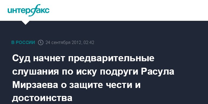 Суд начнет предварительные слушания по иску подруги Расула Мирзаева о защите чести и достоинства