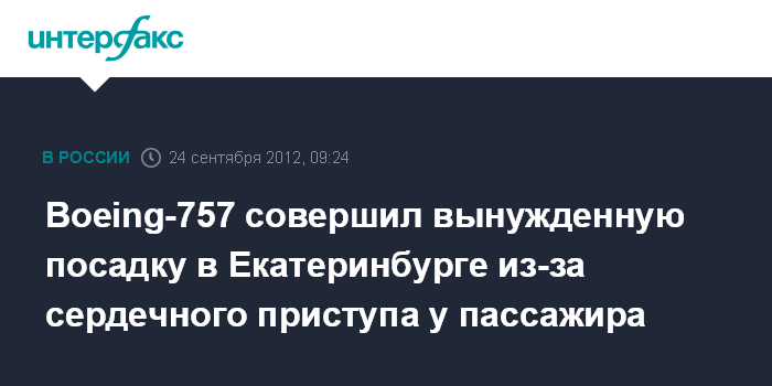 Boeing-757 совершил вынужденную посадку в Екатеринбурге из-за сердечного приступа у пассажира