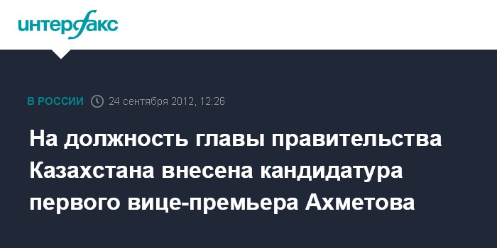 На должность главы правительства Казахстана внесена кандидатура первого вице-премьера Ахметова
