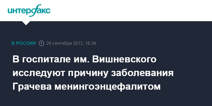 В госпитале им. Вишневского исследуют причину заболевания Грачева менингоэнцефалитом