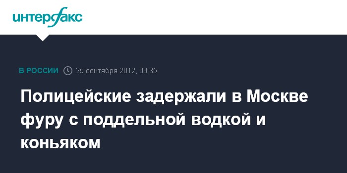 Москва. 25 сентября. INTERFAX.RU - Фуру с 20 тоннами контрафактного алкоголя перехватили на въезде в Москву столичные полицейские, сообщила "Интерфаксу" во вторник представитель Управления экономической безопасности и противодействия коррупции (УЭБиПК) ГУ МВД России по Москве Ирина Волк.
