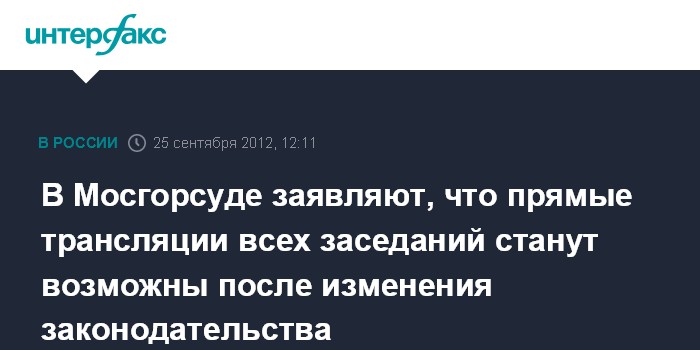 Москва. 25 сентября. INTERFAX.RU - Суды смогут впрямую транслировать целиком свои заседания, если будут внесены соответствующие изменения в законе, сказала председатель Мосгорсуда Ольга Егорова.