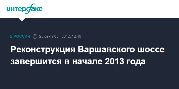 Реконструкция Варшавского шоссе завершится в начале 2013 года