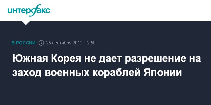 Сеул. 25 сентября. INTERFAX.RU - Южная Корея отказывает японским кораблям в праве зайти в порт Пусан, как это было запланировано в ходе совместных военных учений, сообщает AFP.