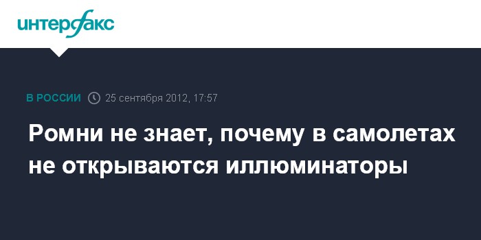 Лондон. 25 сентября. INTERFAX.RU - Кандидат в президенты США от Республиканской партии Митт Ромни допустил промах, спросив, почему в пассажирских самолетах не открываются иллюминаторы, пишет во вторник британская газета The Daily Telegraph.