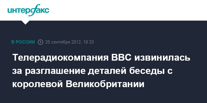 Лондон. 25 сентября. INTERFAX.RU - Британская телерадиокорпорация ВВС во вторник принесла извинения королеве Елизавете II за разглашение содержания ее частной беседы с корреспондентом корпорации.