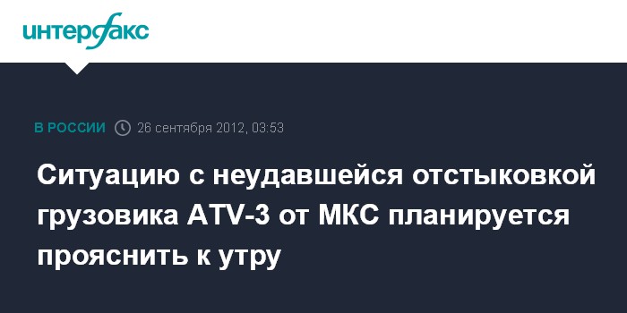 Ситуацию с неудавшейся отстыковкой грузовика ATV-3 от МКС планируется прояснить к утру