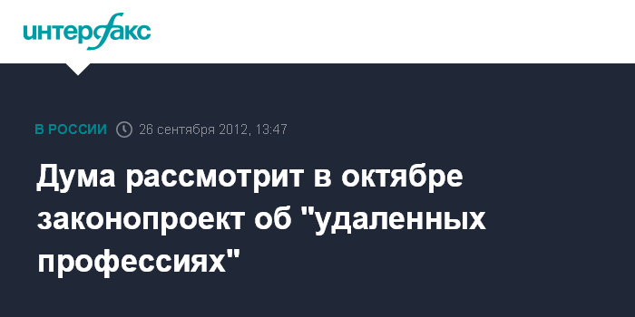 Москва. 26 сентября. INTERFAX.RU - Депутаты Госдумы РФ намерены рассмотреть в середине октября поправки в Трудовой кодекс, которые касаются дистанционной работы через Интернет.