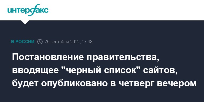 Постановление правительства, вводящее "черный список" сайтов, будет опубликовано в четверг вечером