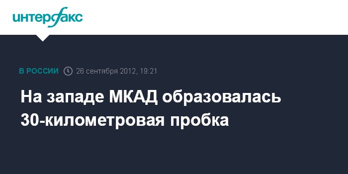 Москва. 26 сентября. INTERFAX.RU – Грандиозные пробки возникли в среду вечером на Московской кольцевой автодороге. Согласно аналитическому сервису "Яндекс.Пробки", север, запад и юг МКАДа стоят поочередно то на внешней, то на внутренней стороне: так, на внешнем радиусе затор тянется от Ярославского до Дмитровского шоссе, затем от Ленинградского до Пятницкого. Самая длинная пробка сформировалась на участке от Рублево-Успенского до Каширского шоссе: на протяжении почти 30 километров средняя скорость автомобильного пока составляет 5 км\ч.