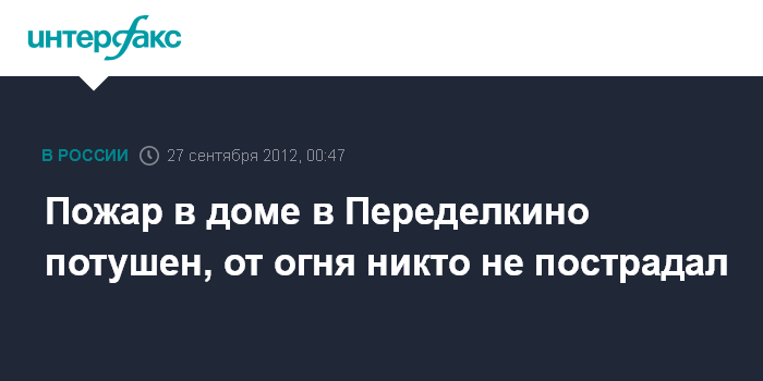 Москва. 27 сентября. ИНТЕРФАКС - Ликвидирован пожар в жилом доме в "Поселке писателей" в Переделкино, сообщил "Интерфаксу" источник в правоохранительных органах.
