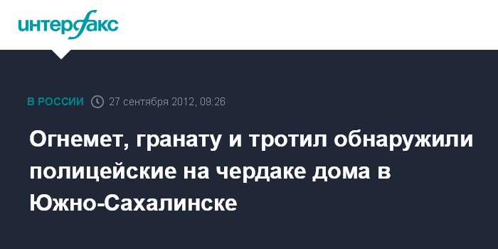 Южно-Сахалинск. 27 сентября. INTERFAX.RU - Полицейские в Южно-Сахалинске изъяли нелегальный арсенал в одном из домов, сообщила пресс-служба областного УМВД.