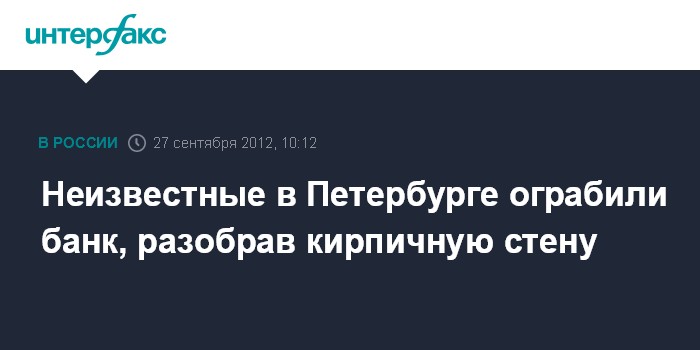 Неизвестные в Петербурге ограбили банк, разобрав кирпичную стену